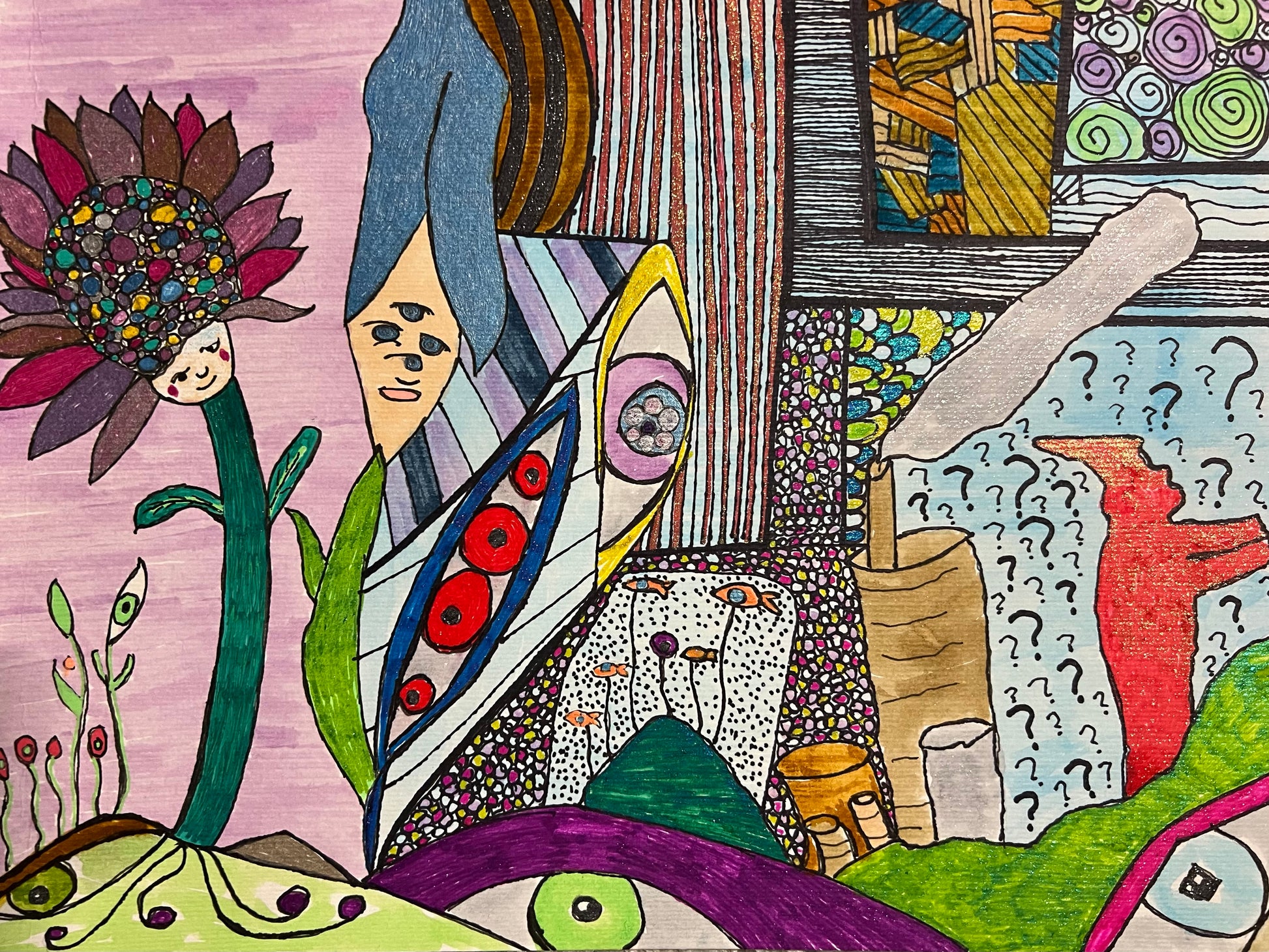 Step into a world where imagination bends reality — where every question mark whispers possibility and every color hums with emotion. “Whispering Dimensions” invites you to wander through a dreamlike landscape where the boundaries of time, space, and thought dissolve into creativity.